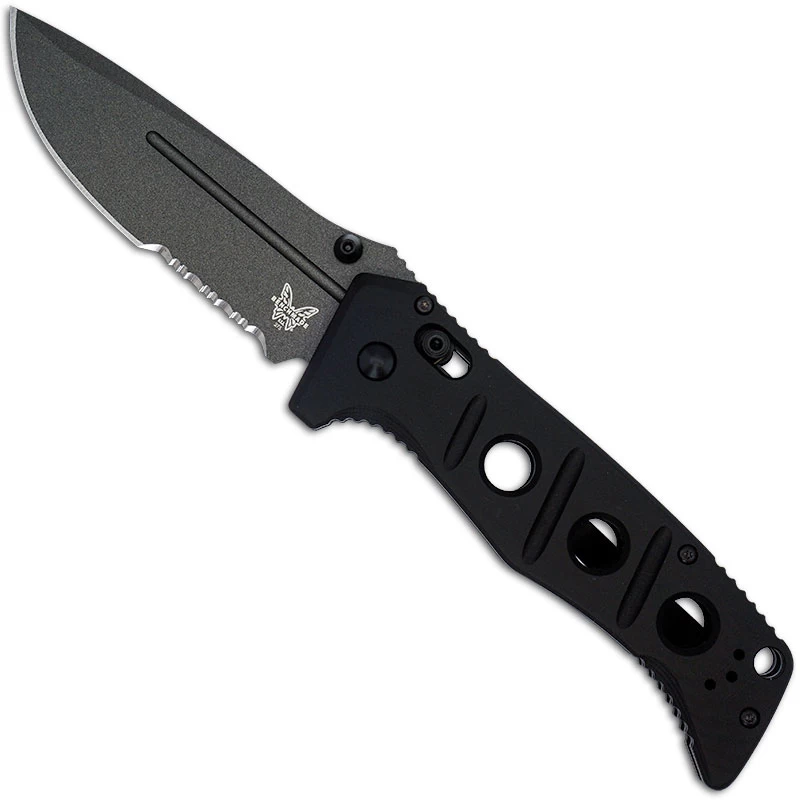 Benchmade Knives: Benchmade Adamas Knife, Part Serrated Tungsten Grey Blade with Black G10, BM-275SGY1