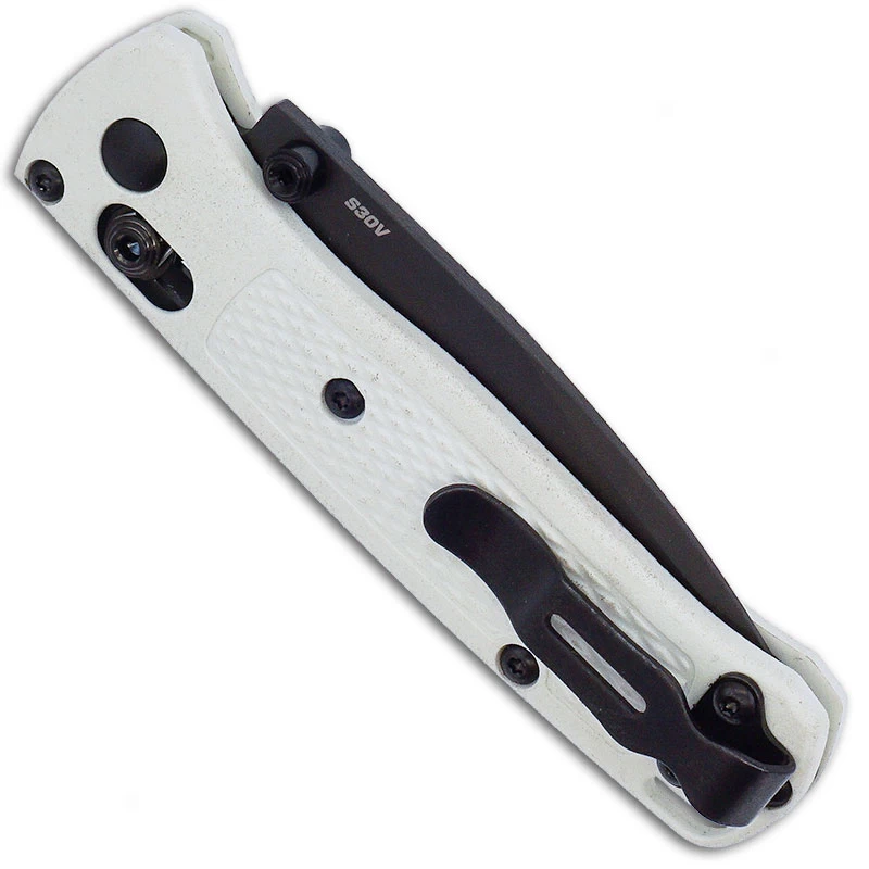 Benchmade Knives: Benchmade Knives: Benchmade Mini Bugout Knife, Black S30V with White Grivory Handle, BM-533BK1