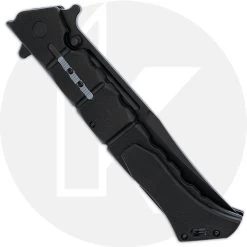 The 20NQXBKBK Cold Steel Large Luzon Knife, designed by Mike Wallace and Lynn C Thompson, is a Balisong inspired folder that features a 6 inch clip point blade made of 8Cr13MoV stainless steel, 3.5mm thick, with a non reflective black finish, swedged tip and fuller, a blade stop that locks up against the handle for resistance against sideways torque, and a dual flipper for ambidextrous one hand opening that forms a finger guard when deployed. The bamboo – esque black GFN (glass filled nylon) handle, 7.5 inches closed, has grooves and notches for secure, comfortable grip, sturdy Leaf Spring Lock with secondary safety, a lanyard hole, and an ambidextrous plastic pocket clip mounted at the butt end. The Large Luzon Knife has an overall open length of 13.5 inches, and it weighs 9.8 ounces. Made in China.