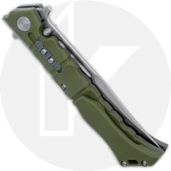 The 20NQL-ODSW Cold Steel Medium Luzon Knife, designed by Mike Wallace and Lynn C Thompson, is a Balisong inspired EDC that features a 4 inch clip point blade made of 8Cr13MoV stainless steel, 2.75mm thick, with a stonewash finish, swedged tip and fuller, a blade stop that locks up against the handle for resistance against sideways torque, and a dual flipper for ambidextrous one hand opening that forms a finger guard when deployed. The bamboo – esque Olive Drab GFN (glass filled nylon) handle, 5 inches closed, has grooves and notches for secure, comfortable grip, sturdy Leaf Spring Lock with secondary safety, a lanyard hole, and an ambidextrous plastic pocket clip mounted at the butt end. The Medium Luzon Knife has an overall open length of 9 inches, and it weighs 3.7 ounces. Made in China.
