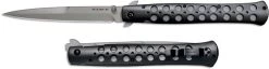 The 49LCK-ODBK Cold Steel SRK (Survival Rescue Knife) – standard issue for Navy Seal Basic Underwater Demolition training, is a workhorse of a knife that features a 6 inch clip point fixed blade made of tough SK-5 tool steel, .20 inch thick, with a non reflective black finish. The Olive Drab Kray-Ex handle has checkered texturing and an integral finger guard for secure grip, and a lined lanyard hole. A Secure-Ex sheath with multiple lashing slots and grommets is included. The Cold Steel SRK with SK-5 blade has an overall length of 10.75 inches, and it weighs 8.2 ounces. Made in Taiwan.
