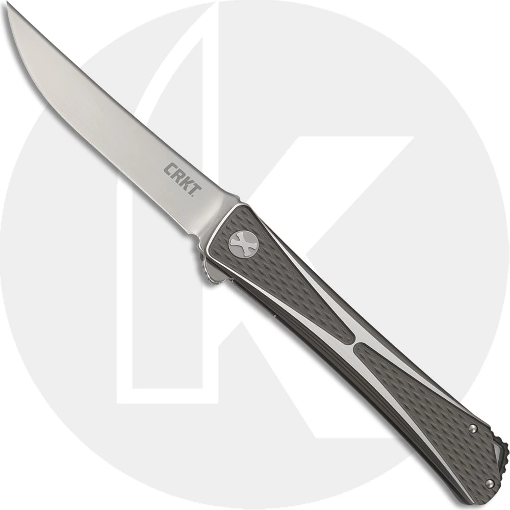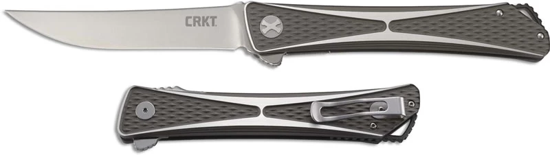 The CRKT 7532 Jumbones Knife is big brother to the award winning Crossbones Knife, designed by Hawaiian knifemaker Jeff Park, that features a 4.845 inch trailing point blade made of AUS-8 stainless steel, .158 inches thick, with a satin finish and a flipper for ambidextrous one hand opening. The slender aluminum handle, 6.125 inches closed, has an eye catching two tone dark gray and brushed finish, knurled texture for secure grip, the IKBS Ball Bearing Pivot System for smooth, fast opening, a liner lock, large lanyard hole and a metal pocket clip. The Jumbones Knife has an overall open length of 11.00 inches, and it weighs 5.6 ounces. Made in Taiwan.