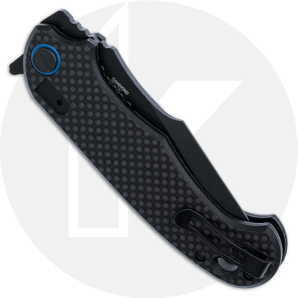 Introducing the P.S.D., a cutting-edge particle separation device designed by Jim Hammond in Birmingham, Alabama. This everyday carry folding knife is designed to slice with precision, thanks to its full recurve blade, highly efficient double grind, and Veff Serrations. The P.S.D. also features assisted opening for fast deployment and an IKBS ball bearing pivot for smooth opening. Made from high carbon stainless steel, the blade is easy to sharpen and maintain. The G10 handle with a carbon fiber layer is strong and lightweight, and the liner lock allows for easy one-handed closing. The pocket clip provides secure, low-profile carry and the blue backspacer and accents add visual appeal. Upgrade your EDC with the P.S.D., the ultimate particle separation device.