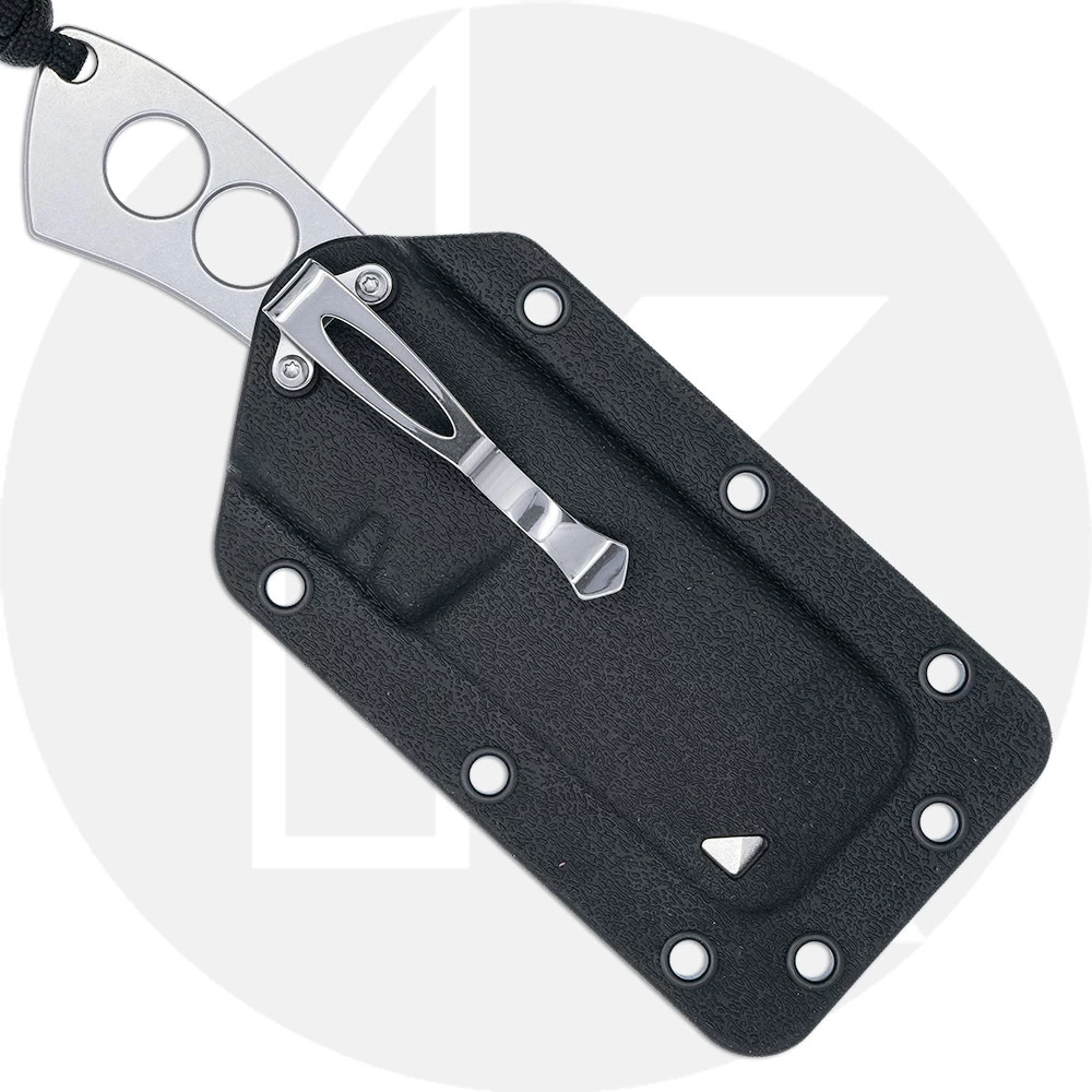 The 2130 CRKT Razel Chisel, designed by Jon Graham of Cleveland, Tennessee, is a compact EDC fixed blade addition to the Razel Family that features single piece 8Cr13MoV stainless steel construction with an all over stonewash finish. The Razel Chisel Knife has a 2.0 inch blade area with chisel grind and fuller, and a pronounced choil and notched thumb rest for secure grip. The handle area has a milled hole pattern for visual interest (and to lessen weight), and a lanyard hole with braided fob. A black thermoplastic sheath with clip for pocket carry is included. The Razel Chisel has an overall length of 5.31 inches, and it weighs 2.0 ounces, 2.8 ounces with the sheath.