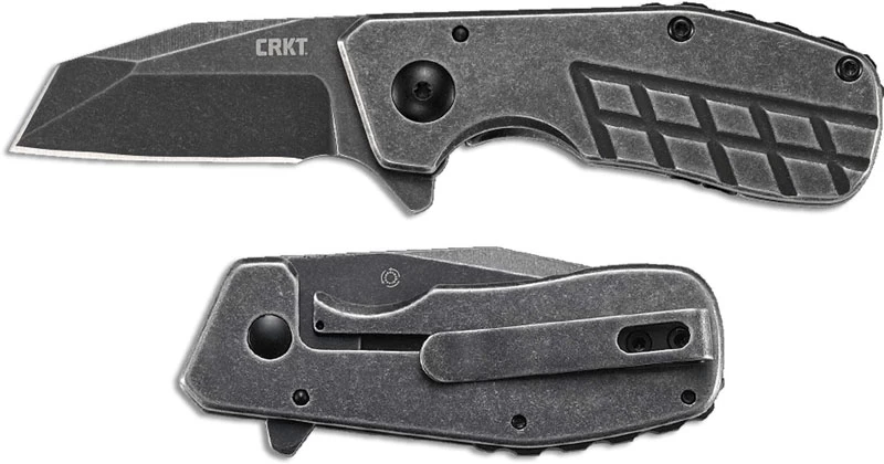 The 2009 CRKT Folding Razel, designed by Jon Graham of Cleveland, Tennessee, was a knife ahead of its time with its (now trending) cleaver shape and chisel / scraper leading edge – and 2021 marks the return of the Razel style! The 4021 CRKT Razelcliffe Compact features a 2.09 inch modified Wharncliffe blade made of 8Cr13MoV stainless steel, .11 inch thick, with a non reflective black stonewash finish, complex dual swedge grind and a flipper for ambidextrous one hand opening. The ergonomic black stonewash stainless steel handle, 3.33 inches closed, has the IKBS ball bearing pivot system for smooth deployment, milled grooves and a notched back spacer for visual interest and secure grip, sturdy frame lock and removable pocket clip mounted at the butt end. The CRKT Razelcliffe Compact Knife has an overall open length of 5.25 inches, and it weighs 3.30 ounces. Made in China.