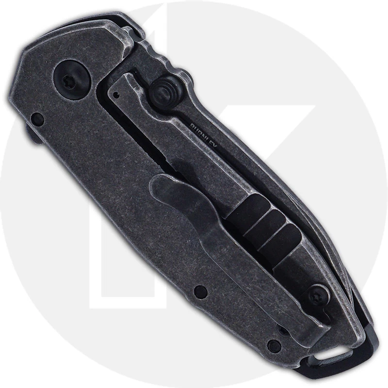 The CRKT Squid with an Assist! The 2493 CRKT Squid Assisted Black Knife, designed by Lucas Burnley of Bend, Oregon, is a slightly larger, assisted variant of the popular Squid EDC that features a 2.37 inch spear point blade made of 8Cr14MoV stainless steel, .11 inch thick, with a non reflective black stonewash finish, a notched thumb rest for secure grip, dual thumb studs, flipper and Assist for ambidextrous one hand opening. The black stonewash stainless steel handle, 3.59 inches closed, has the IKBS ball bearing pivot system for smooth deployment, a sturdy frame lock, a handy lanyard hole and removable pocket clip mounted at the butt end. The CRKT Squid Assisted Black has an overall open length of 5.94 inches, and it weighs 3.70 ounces. Made in China.
