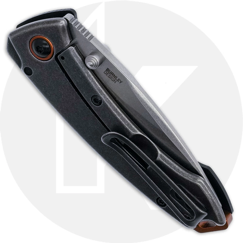 The 2522 CRKT Tuna Compact Knife, designed by Lucas Burnley of Orleans, Massachusetts, is a mini workhorse of an EDC that features a 2.73 inch deep belly drop point blade made of 8Cr13MoV stainless steel, .14 inches thick, with a top swedge, a stonewash finish, and dual thumb studs for ambidextrous one hand opening. The handle, 3.81 inches closed, has a textured black G10 front, a stainless steel back, bronze anodized pivot ring and backspacer for visual interest, a sturdy frame lock, lanyard hole and a removable stainless steel pocket clip mounted at the butt end. The Tuna Compact Knife has an overall open length of 6.44 inches, and it weighs 2.8 ounces.