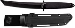 The KA-BAR Foliage Green Hard Plastic Sheath features two ways to keep the blade secure. A friction guard lock holds the blade inside the sheath, and a nylon retaining strap snaps around the handle for extra security. The sheath is also salt water resistant, so the blade will not cut through if the sheath is submerged in salt water. The KA-BAR hard plastic sheath has several grommets and slots for tie-downs, and allows for a variety of carrying options.