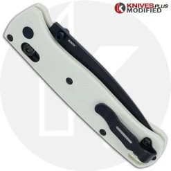 The MODIFIED 535BK-2 Bugout features a 3.24 inch drop point blade made of CPM S30V stainless steel, .090 inch thick, with a Rockwell hardness of 58-60, a non reflective black finish with a top swedge and dual thumb studs for ambidextrous one hand opening. The ergonomic black CF-Elite (carbon fiber reinforced nylon polymer) handle have been replaced with the KP Custom Bone White G10 Scales. The Bugout has a closed length of 4.22 inches, an ambidextrous AXIS Lock, a large lanyard hole and a side to side reversible mini deep carry pocket clip mounted at the butt end. This Benchmade Bugout Knife has an overall open length of 7.46 inches, and it weighs only 2.30 ounces. Proudly made in the USA.