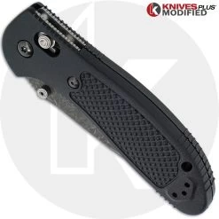 The illustrated MODIFIED Benchmade Knife is the Benchmade Griptilian Knife that features an ACID STONEWASHED 3.45″ modified drop point blade made of S30V stainless steel, .115″ thick, with a Rockwell hardness of 58-61. The blade of this Benchmade knife has dual thumb studs for ambidextrous one hand opening and a notched thumb ramp. The molded, textured Noryl GTX handle of this Benchmade knife, 4.62″ closed, has an ambidextrous Axis-Lock, dual stainless steel liners, and a lanyard hole. A side to side reversible steel pocket clip is mounted at the butt end. The MODIFIED Benchmade Griptilian Knife has an overall length of 8.07″ when open, and weighs 3.25 ounces.