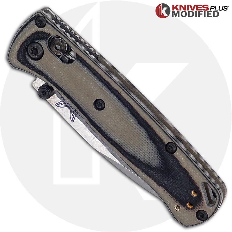 MODIFIED Benchmade Mini Bugout 533 Knife + KP Contoured Black / Desert Tan G10 Scales + KP Black Thumbstud & Standoffs