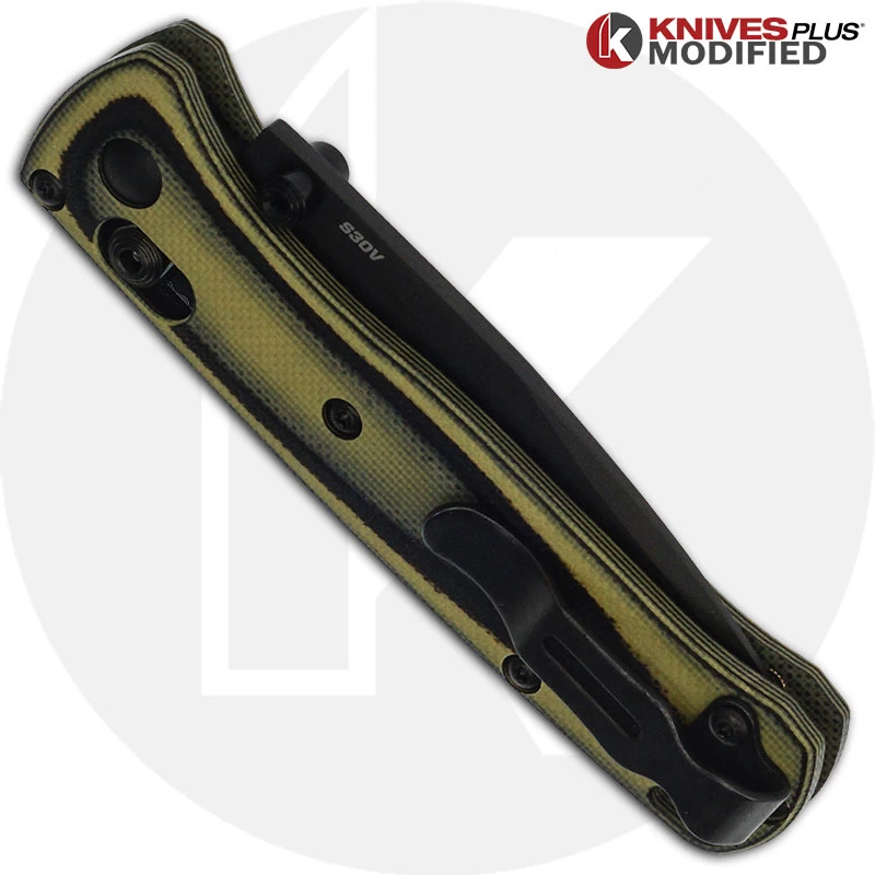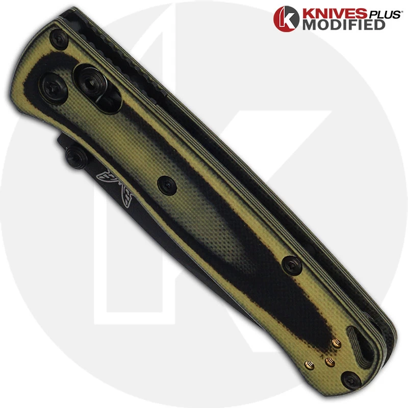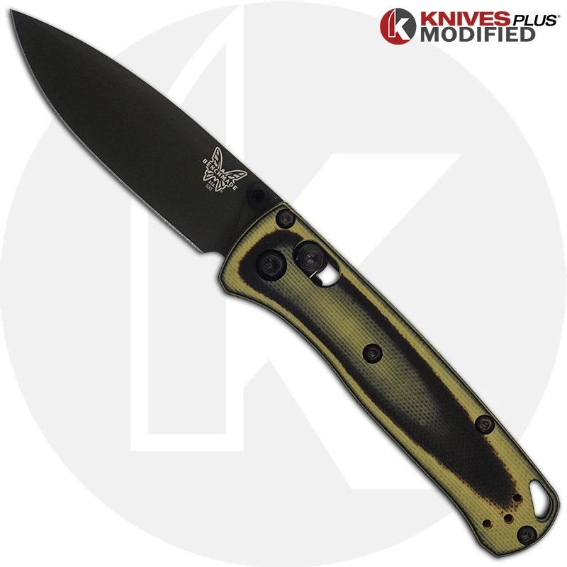 MODIFIED Benchmade Mini Bugout 533BK Knife + KP Contoured Black / Chrome Yellow G10 Scales