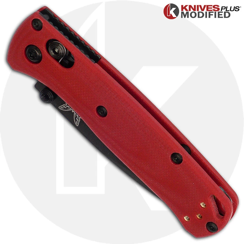 MODIFIED Benchmade Mini Bugout 533BK Knife + KP Contoured Red G10 Scales