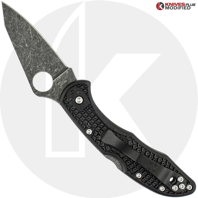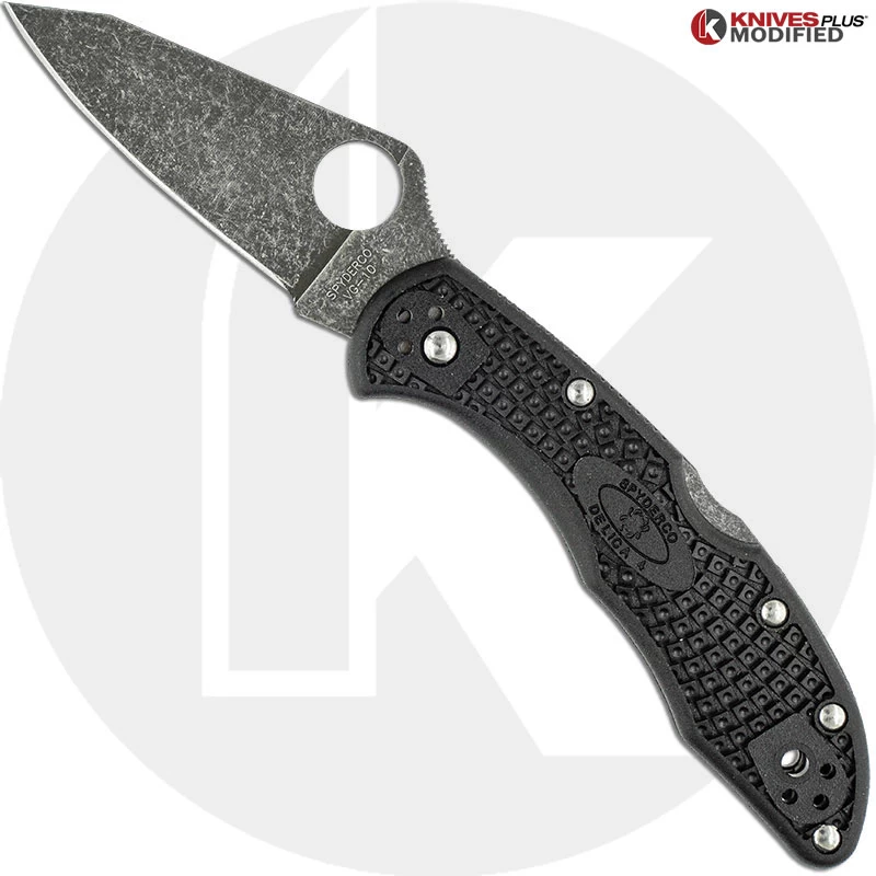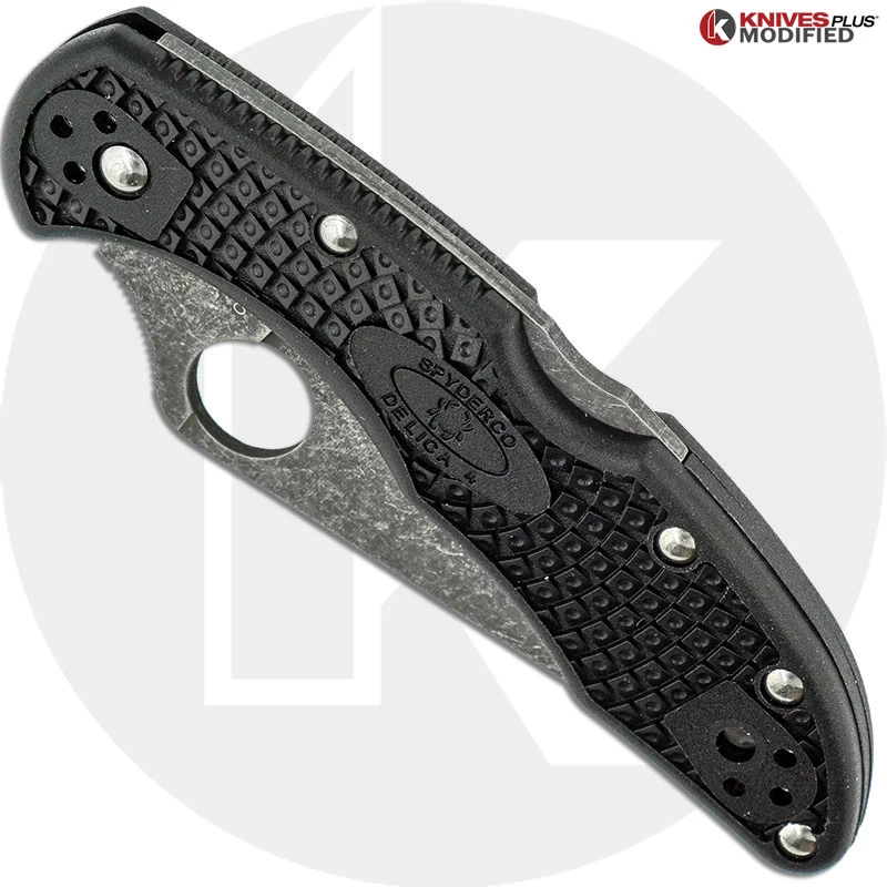 MODIFIED Spyderco Delica 4 – Acid Wash – Regrind – Black Handle/Black Backspacer