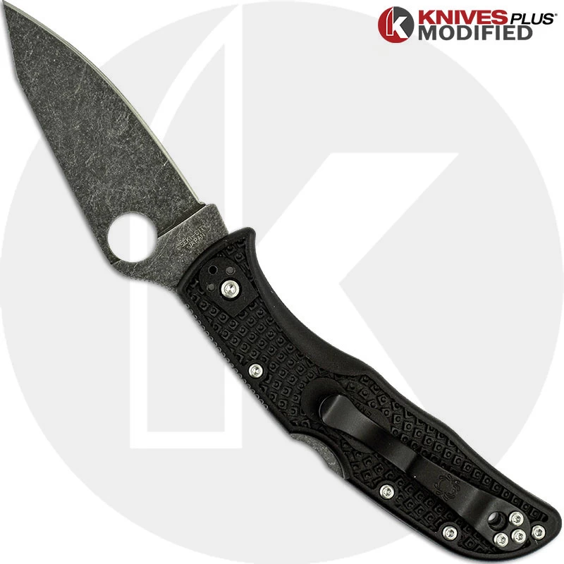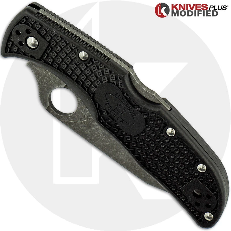MODIFIED Spyderco Endela Knife – Acid Stonewash – Regrind – Black Handle – KP-C243PBK-2