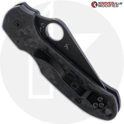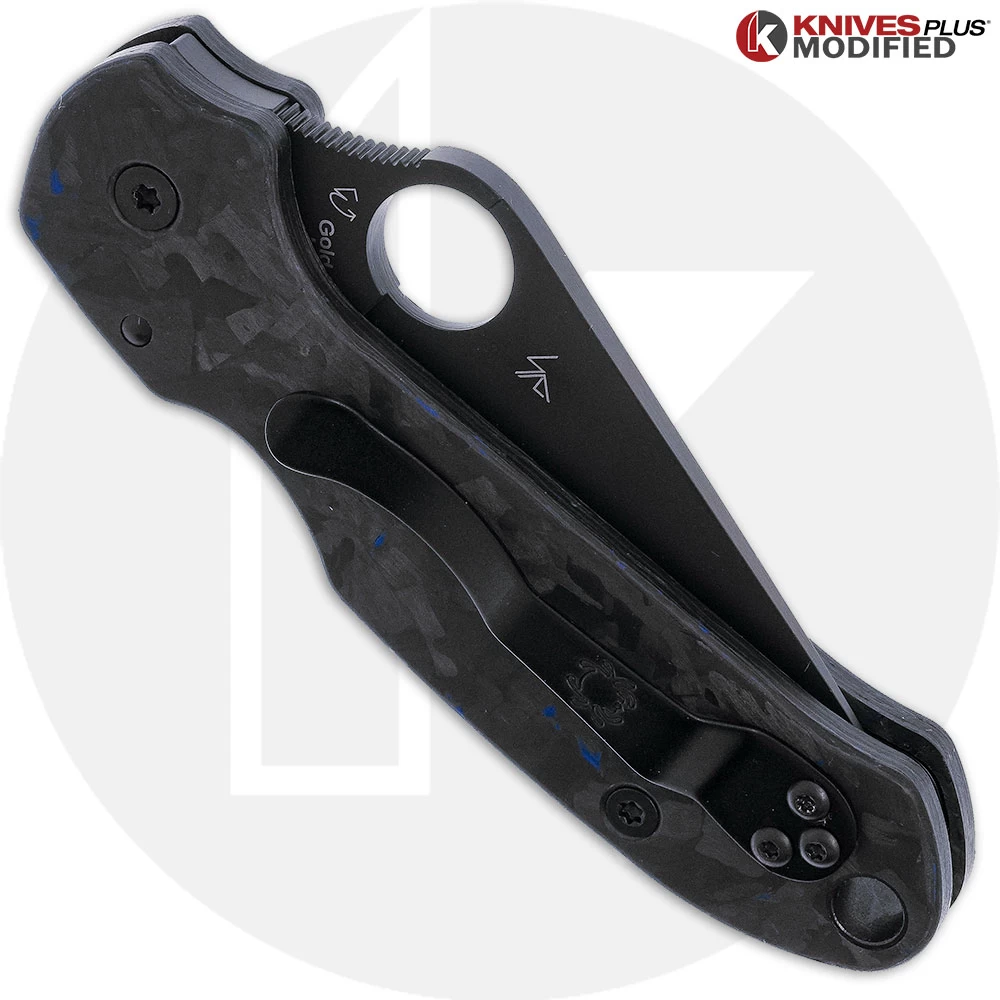 MODIFIED Spyderco Para 3 Black DLC Knife + KP SKINNY Blue Shred Carbon Fiber Scales