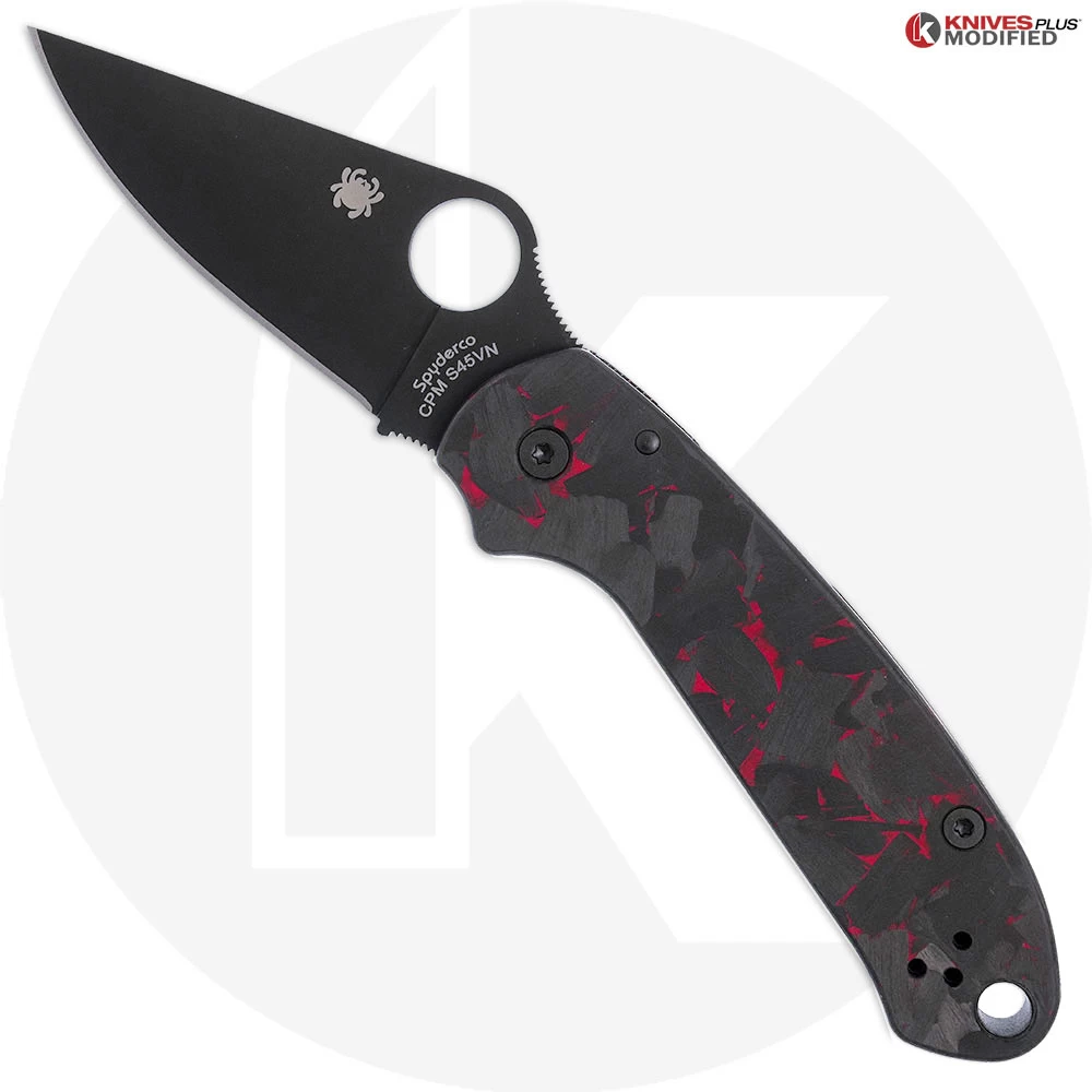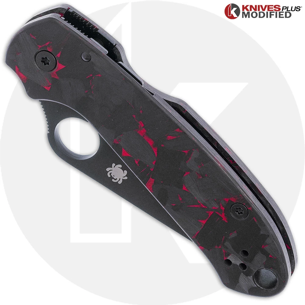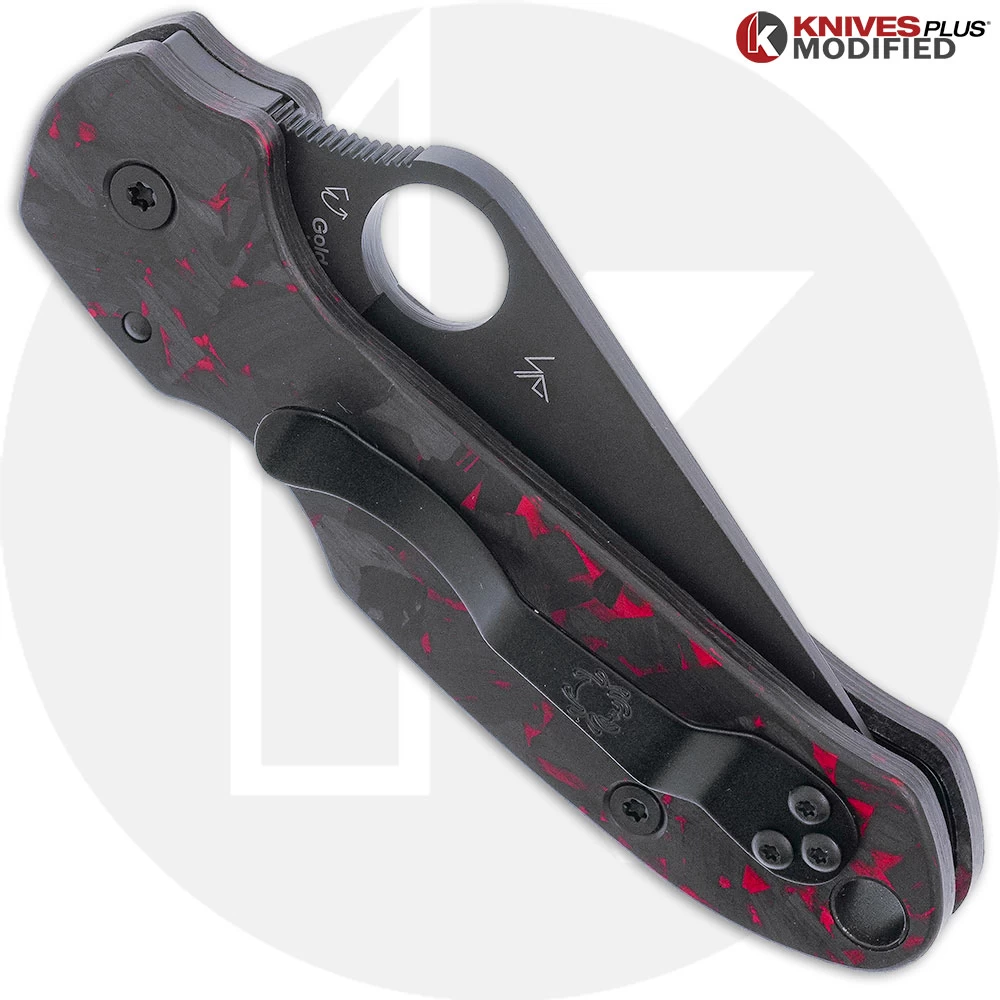 MODIFIED Spyderco Para 3 Black DLC Knife + KP SKINNY Red Shred Carbon Fiber Scales