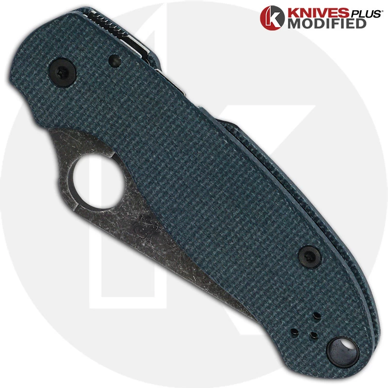 MODIFIED Spyderco Para 3 Knife with Acid Stonewash Blade + KP Blue Linen Micarta Scales + All Black Hardware