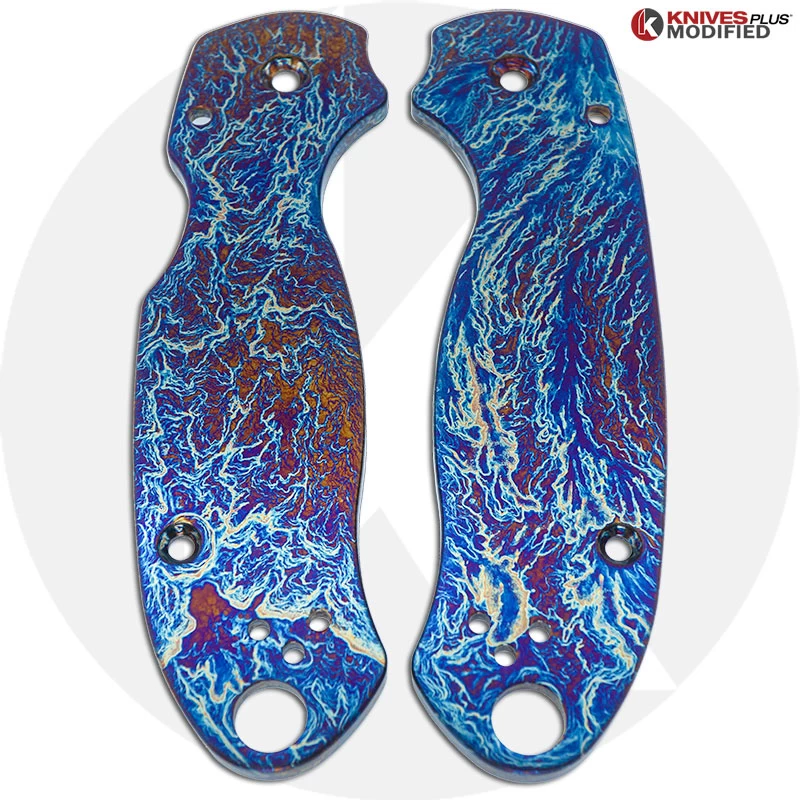 MODIFIED Spyderco Para 3 Knife with Acid Stonewash + KP Titanium Scales MAYHEM FINISH