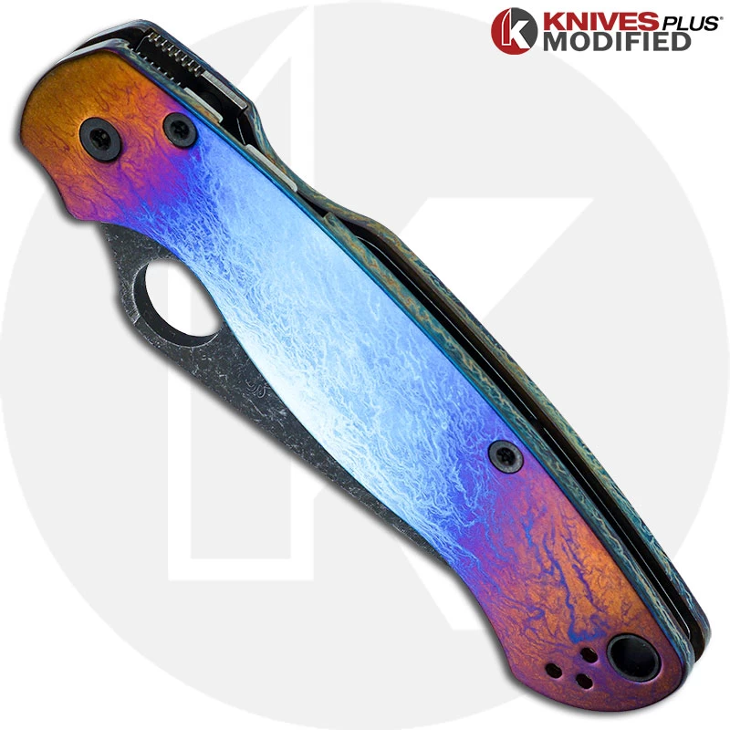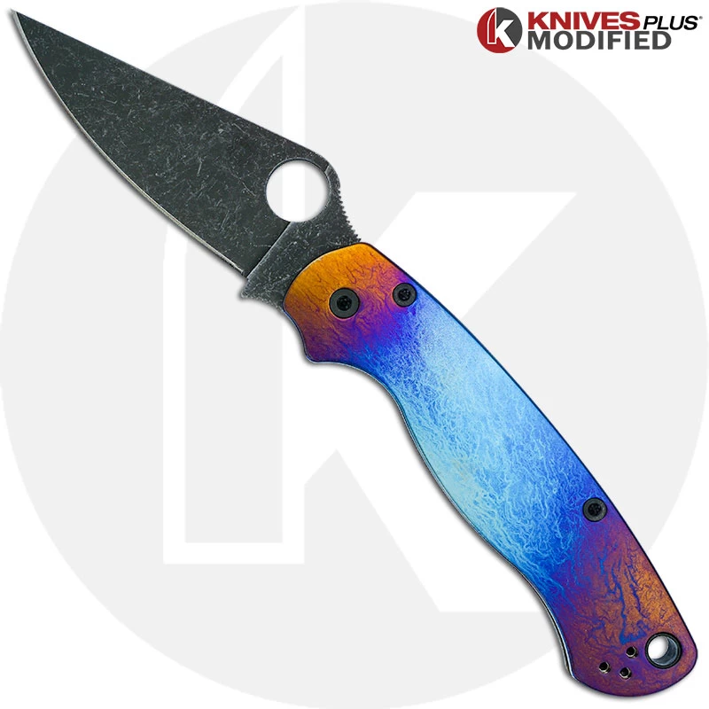 MODIFIED Spyderco Para Military 2 Knife with Acid Stonewash + KP Super Nova Titanium Scales + All Black Hardware