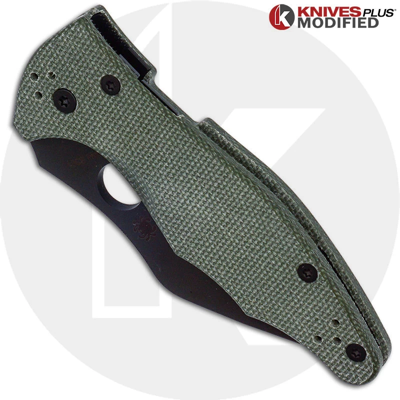 MODIFIED Spyderco Yojimbo 2 Black DLC Knife + KP OD Green Micarta Scales