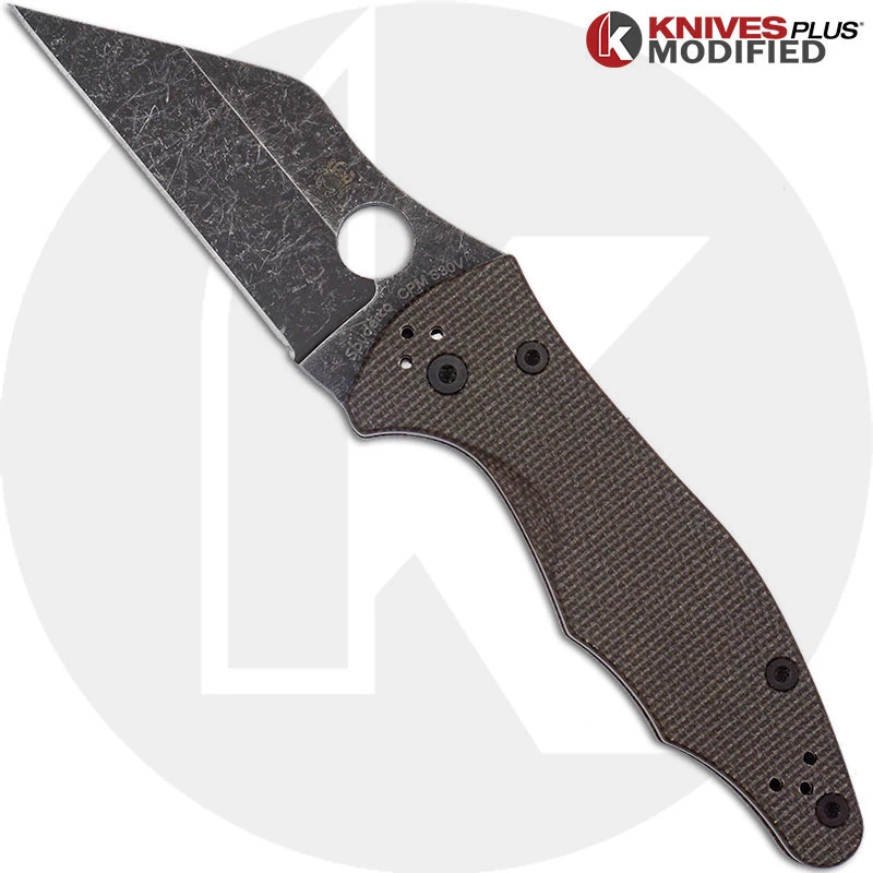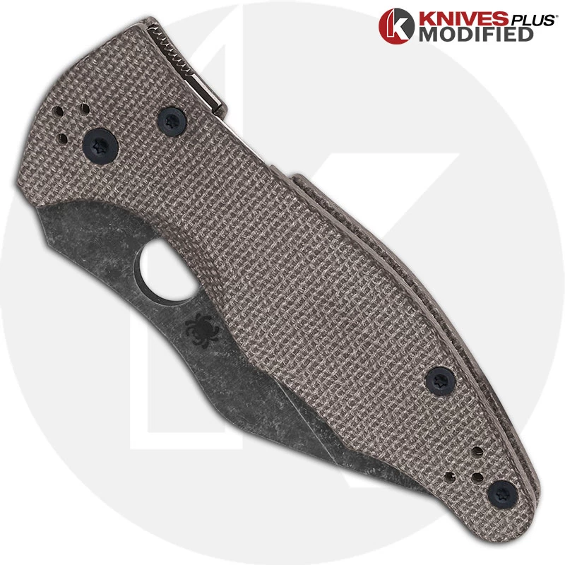MODIFIED Spyderco Yojimbo 2 Knife with Acid Stonewash Blade + KP Brown Micarta Scales + KP All Black Hardware