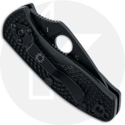 The C148SBBK Spyderco Ambitious Lightweight – a welcome addition to the Spyderco Value Folder lineup, features a 2.31 inch serrated drop point blade made of 8Cr13MoV stainless steel, .118 inches thick, with a non reflective black oxide finish, a full flat grind, notched thumb ramp, and the Spyderco hole for ambidextrous one hand opening. The black FRN (fiberglass reinforced nylon) handle, 3.58 inches closed, has ergonomic contouring and Bi-Directional Texturing for secure grip, skeletonized steel liners for strength, sturdy liner lock, a lanyard hole, and a 4 position steel pocket clip. The Spyderco Ambitious Lightweight Knife has an overall open length of 5.87 inches and it weighs 2.8 ounces. Made in China.