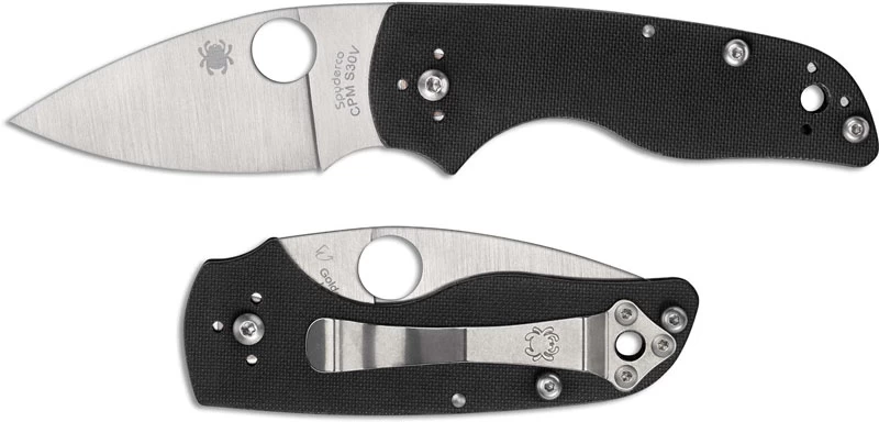 The C230NLGP Spyderco Lil’ Native Knife features a 2.42 inch non locking leaf blade made of CPM S30V stainless steel, .125 inch thick, with a full flat grind and the Spyderco hole for ambidextrous one hand opening. The black G10 handle, 3.47 inches closed, has ergonomic contours and peel ply texturing for secure grip, a lanyard hole, and a 4 position steel pocket clip. The Spyderco Lil’ Native G10 SLIPIT Knife has an overall open length of 5.89 inches, and it weighs 2.5 ounces. Proudly made in the USA.