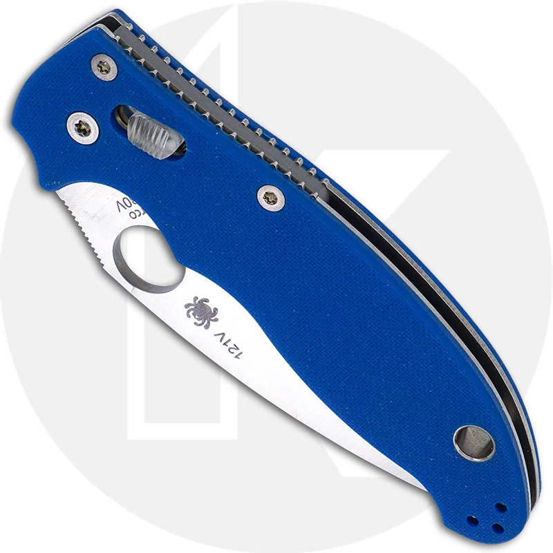 Manix 2 fans rejoice Spyderco is making the first of a couple Manix 2 Sprints. A run of royal blue G-10 handle and full flat-ground CPM S30V bladed Manix 2 are available for a short time. True to the original, the Manix 2 Sprint has a Ball Bearing Lockâ„¢ which is a hardened free-floating ball bearing contained in a custom hi-tech polymer cage. The round ball bearing allows the lock to self adjust across a large surface, smoothly and consistently locking-up with solid confidence. Evolving over time, the Ball Bearing Lock’s strength withstands hard work with a secure, versatile and comfortable grip. Ergonomics are peerless in this design.