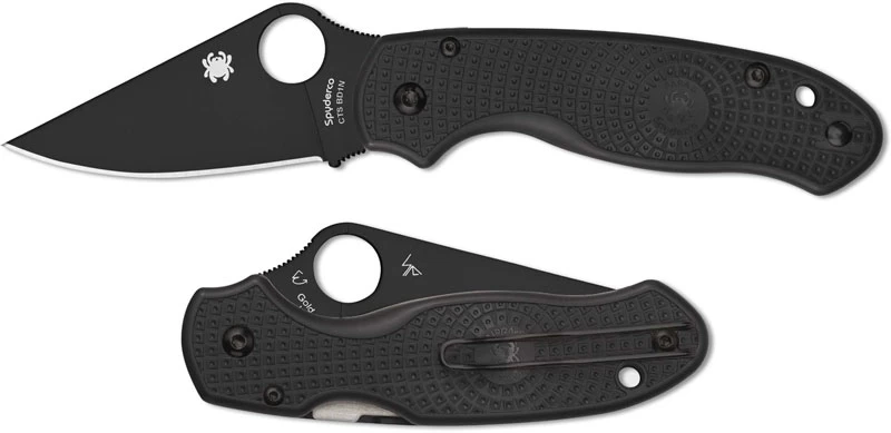 Its PlainEdgeâ„¢ blade is full-flat ground from CTS® BD1N stainless steel and supported by a streamlined version of Spyderco’s patented Compression Lockâ„¢ mechanism. To complement the blade’s finish, the screws and reversible deep-pocket carry clip on its injection-molded, fiberglass-reinforced-nylon (FRN) handle also sport a non-reflective black coating.
