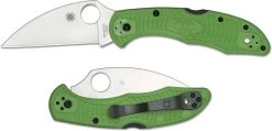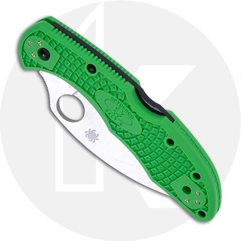 From the 2021 Spyderco Reveal 7 Product Guide: Many savvy knife users swear by Wharncliffe-style blades because their perfectly straight cutting edges offer everything from extreme cutting power to scalpel-like precision. Now that versatility is also fearlessly corrosion resistant in the form of the Salt 2 LC200N Wharncliffe. A powerful combination of advanced handle ergonomics, high-traction Bi-Directional Texturingâ„¢, a stout back lock mechanism, a four-position pocket clip, a full-flat-ground LC200N blade, and a vibrant green handle color, this compact folder has it all. It is also available in both PlainEdge and fully serrated SpyderEdge formats.